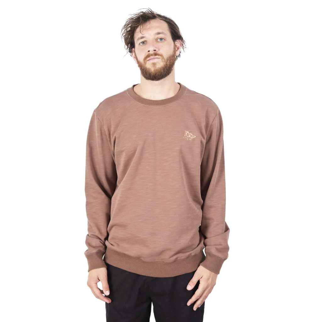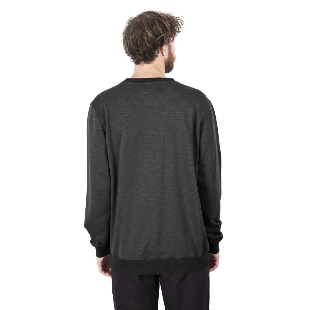 Buzo cuello base confeccionado en rústico flammé, bordado al tono en el delantero y etiqueta tejida en espalda.