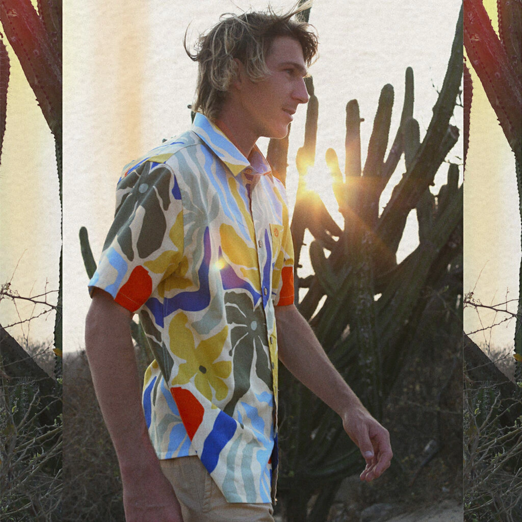 En cuanto te pones la camiseta Palm Wrap, estás en una playa de arena, el sol te pega en la espalda y calienta tu piel. La camiseta Palm Warp, con su vibrante estampado botánico abstracto, refleja el exuberante paraíso tropical que te rodea. ¡Sigue adelante, hombre!