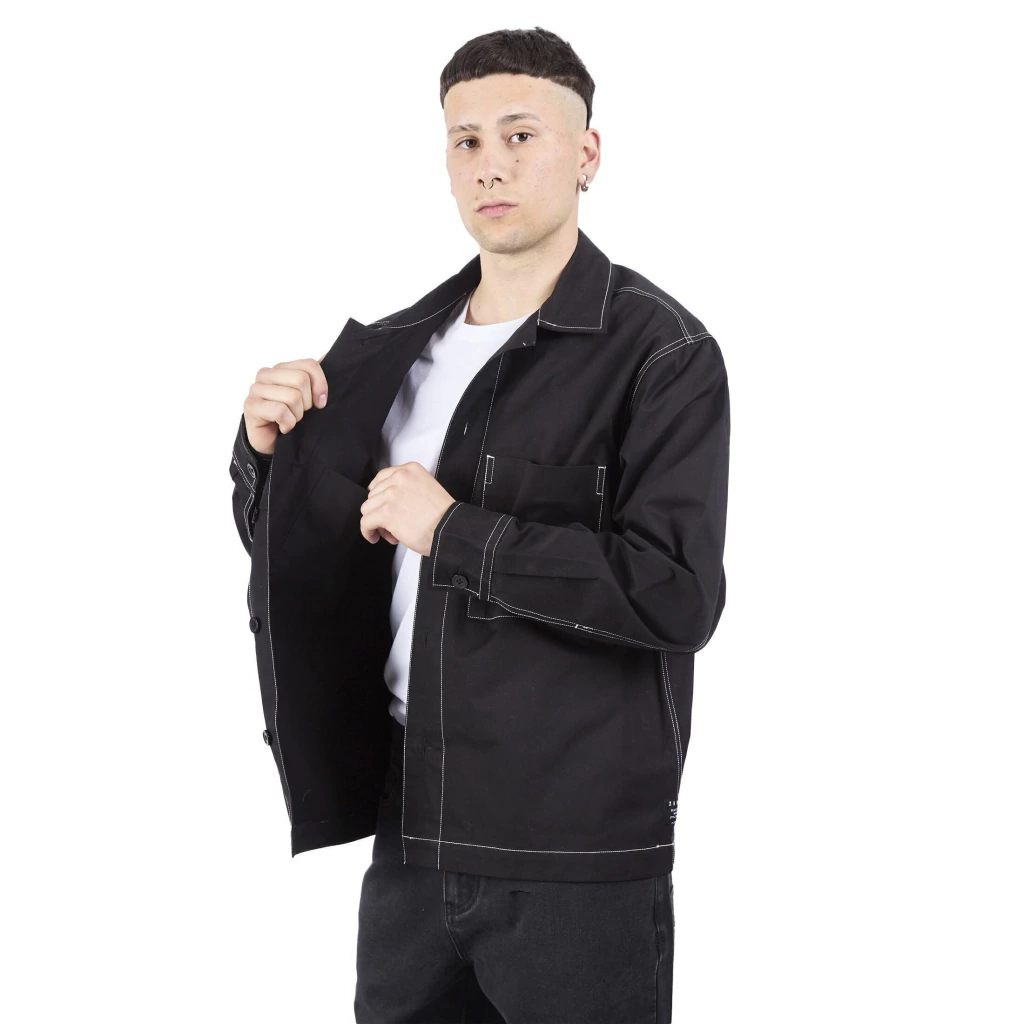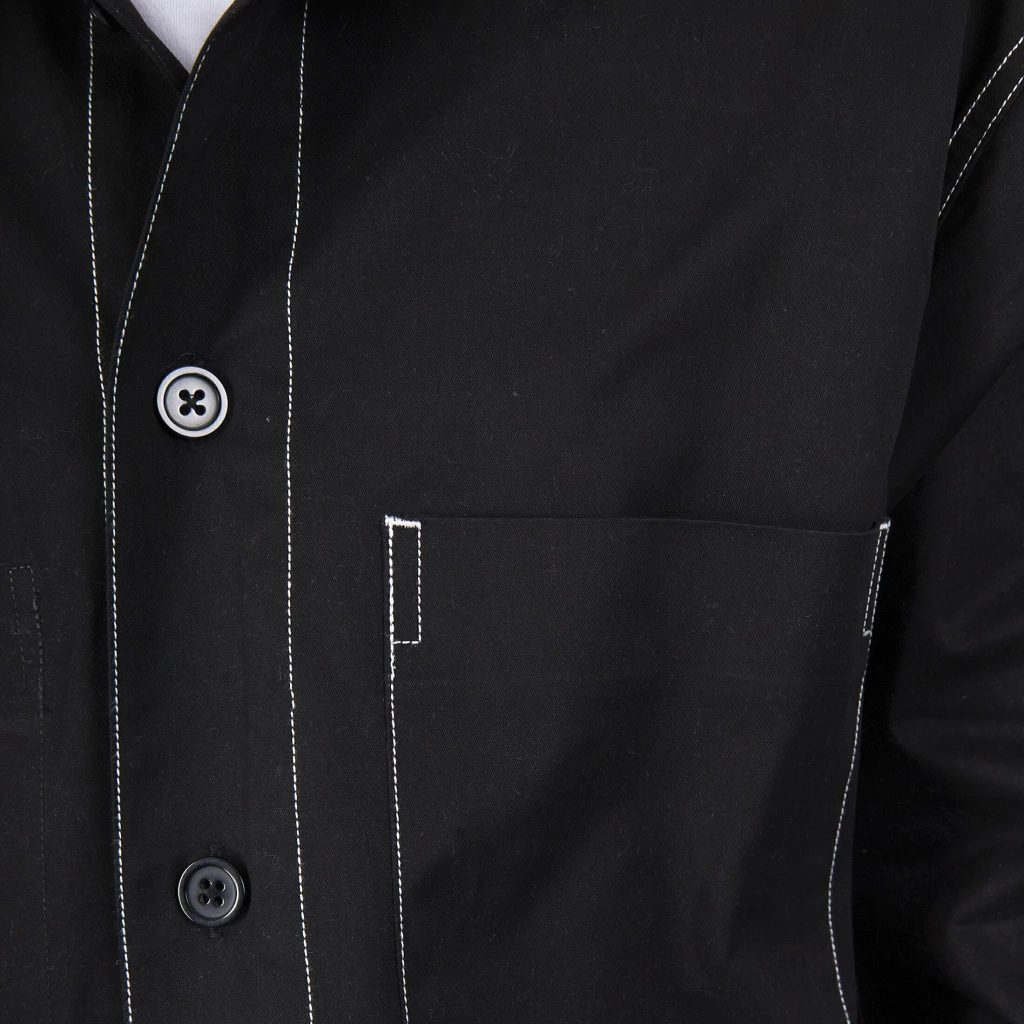 Camisa de gabardina. Bolsillo delantero y costuras de falso bolsillo. Bolsillo interior. Etiqueta tejida. Avios personalizados. 100% ALGODON.