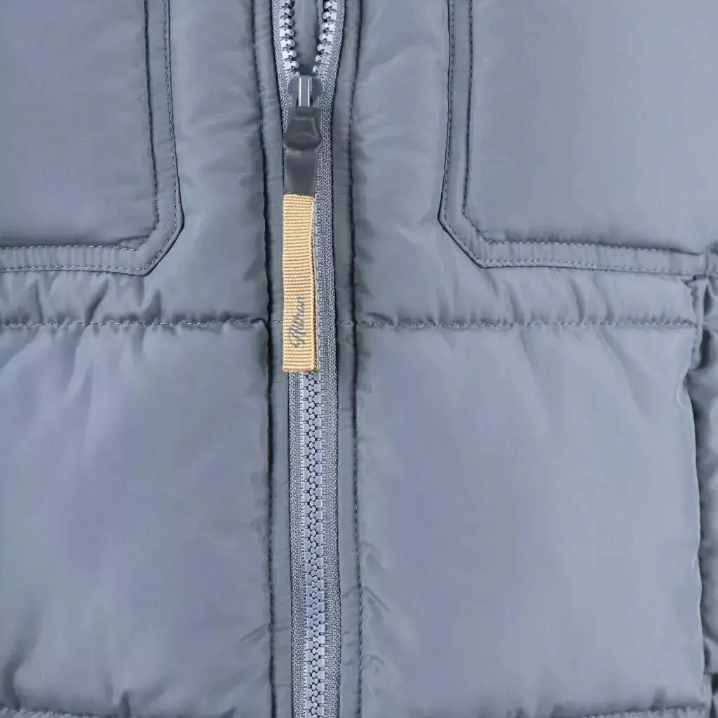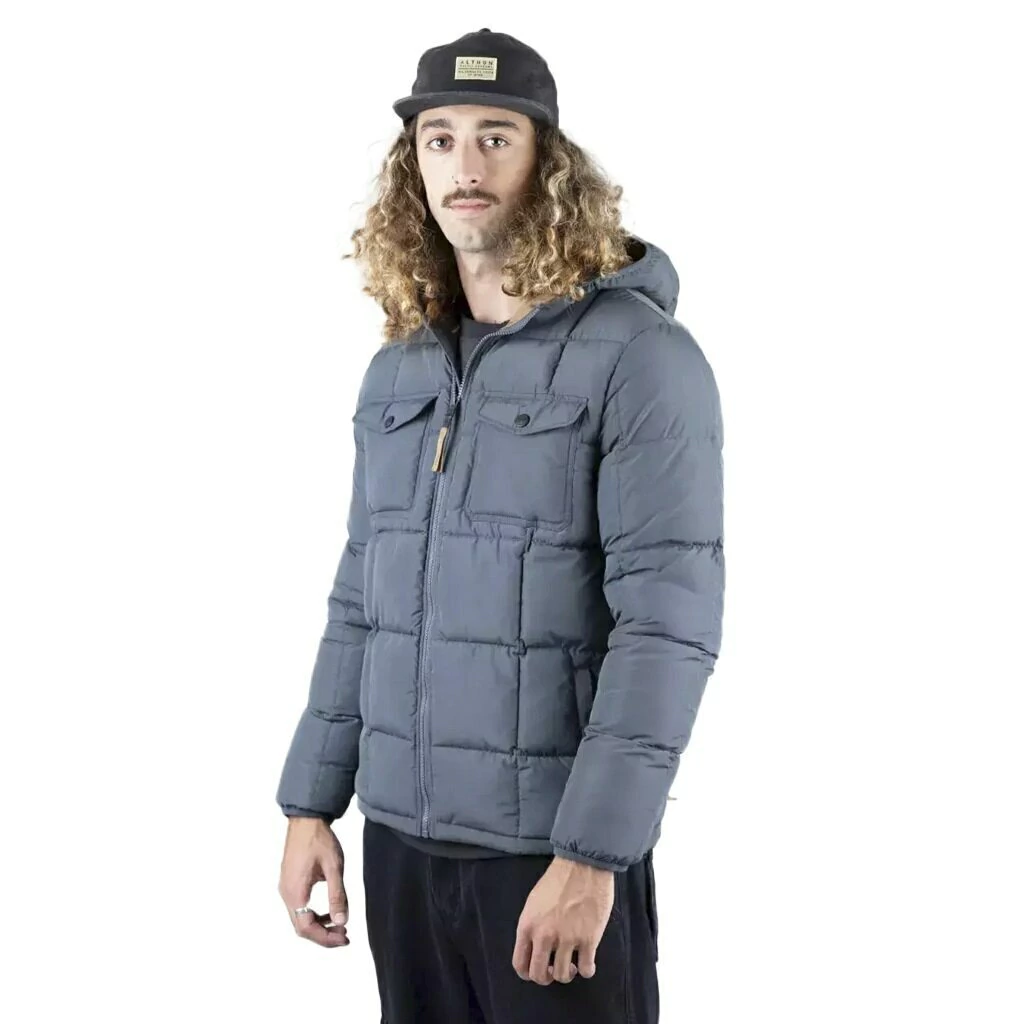 Campera matelasseada con forma de cuadros importada. Capucha e interior forrado a contratono. Acceso central con cierre. Tiene dos bolsillos plaqueÌ delanteros con tapa y broche personali- zado Althon. El bolsillo izquierdo posee un bordado al tono. Tiene bolsillos laterales con cierre. Ruedo ajustable con cordoÌn, tancas y ojalillos personalizados Althon. Bolsillo interno con etiqueta interior jacket .
