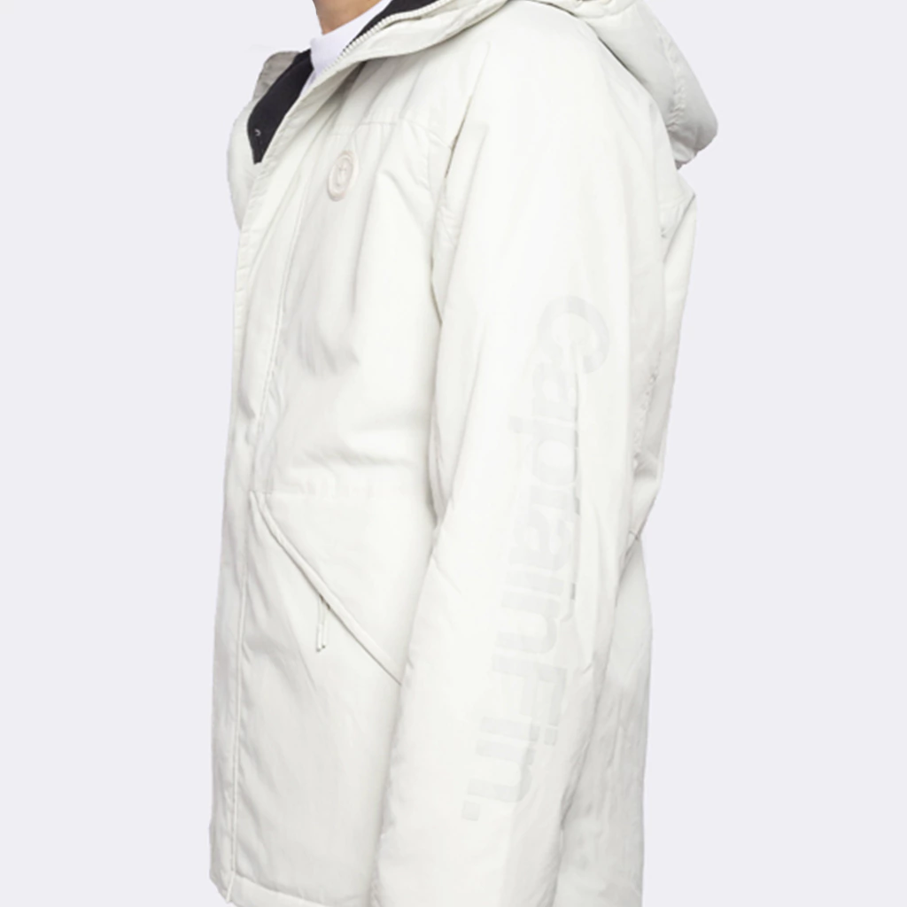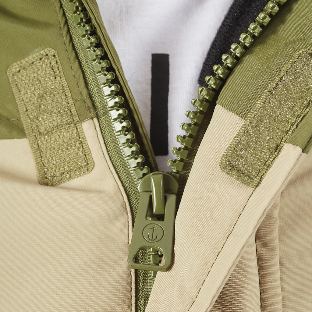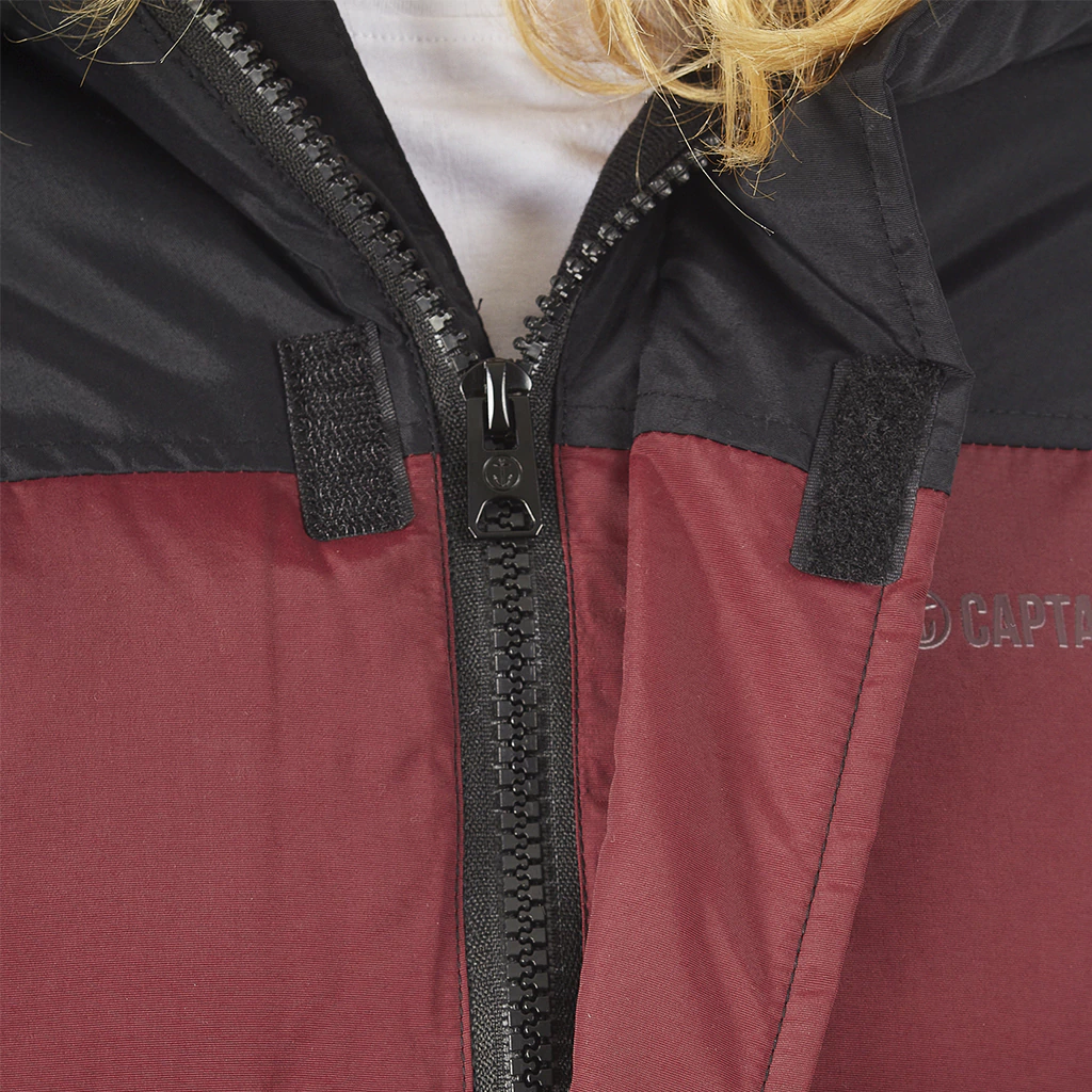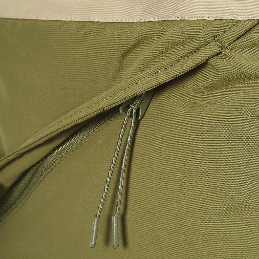 Campera impermeable. Resistente al viento. Capucha fija con ajuste por cordón elástico. Bolsillos externos con cierre y tapa. Bolsillo interno con cierre. Acceso frontal: cierre y cartera con velcro. Ajuste interior en dobladillo por cordón. 100% Poliéster.