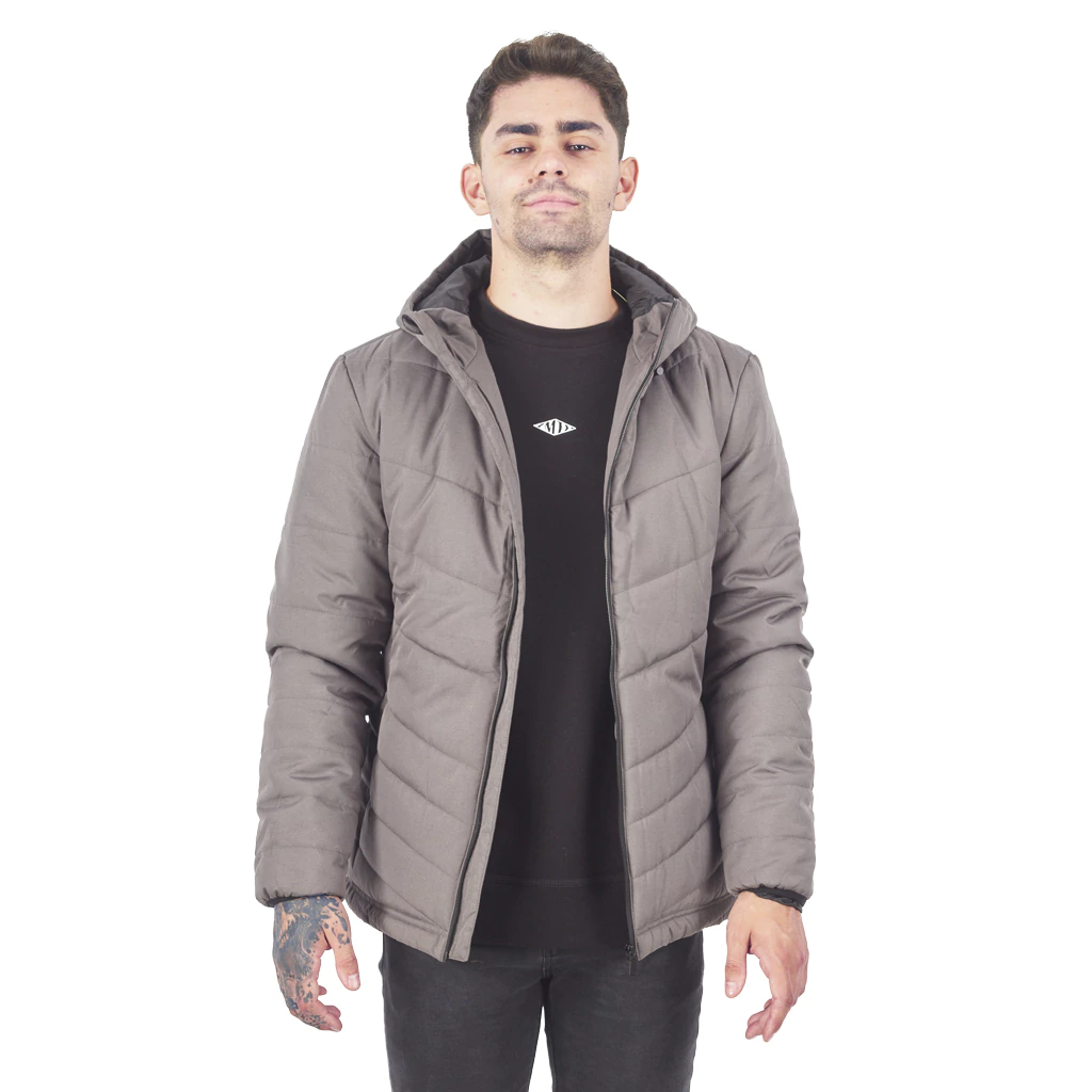 Campera de abrigo inflable. Capucha ajustable por cordón. Dos bolsillos externos con cierre. Un bolsillo interno. Logo heat transfer. Puños regulados por elástico. 100% Poliéster.