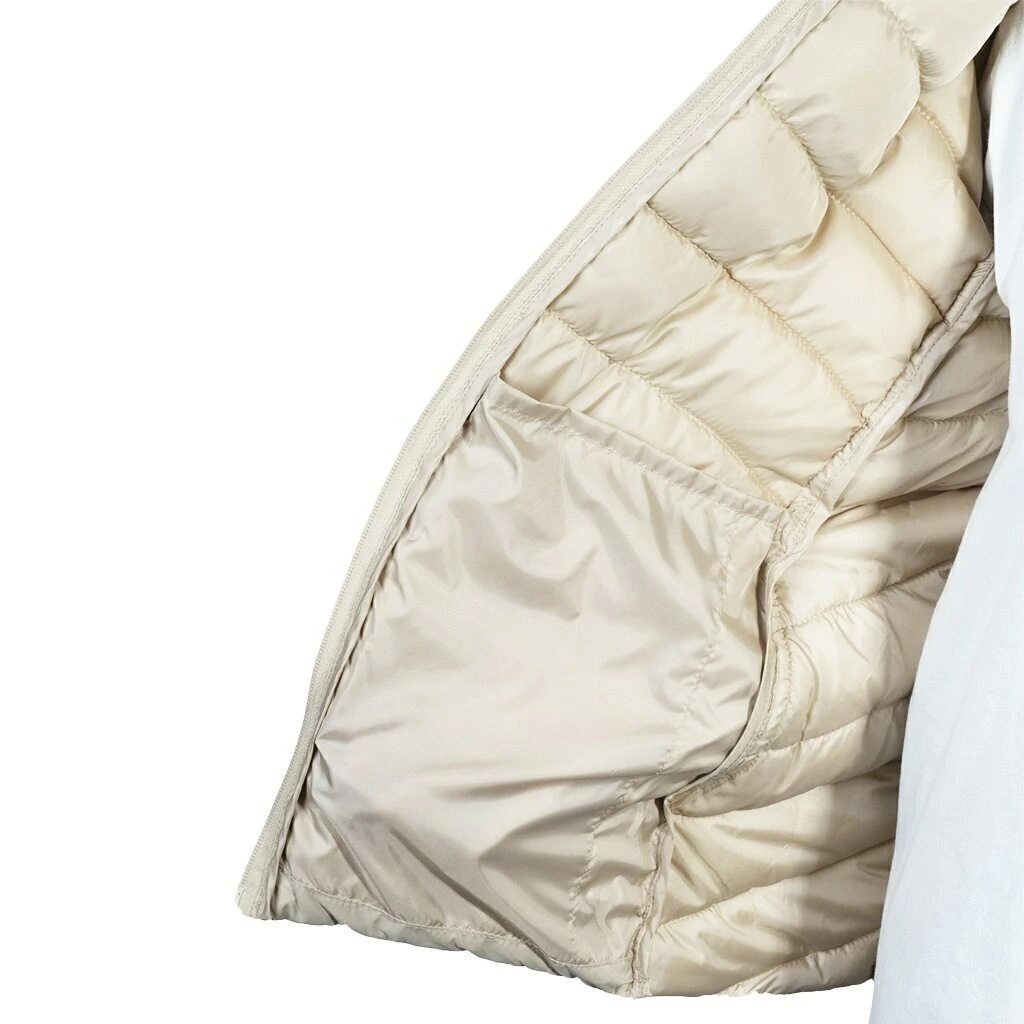 Campera liviana con canelones, cuello alto y bolsillos internos. Perfecta para cualquier entusiasta de actividades al aire libre.
