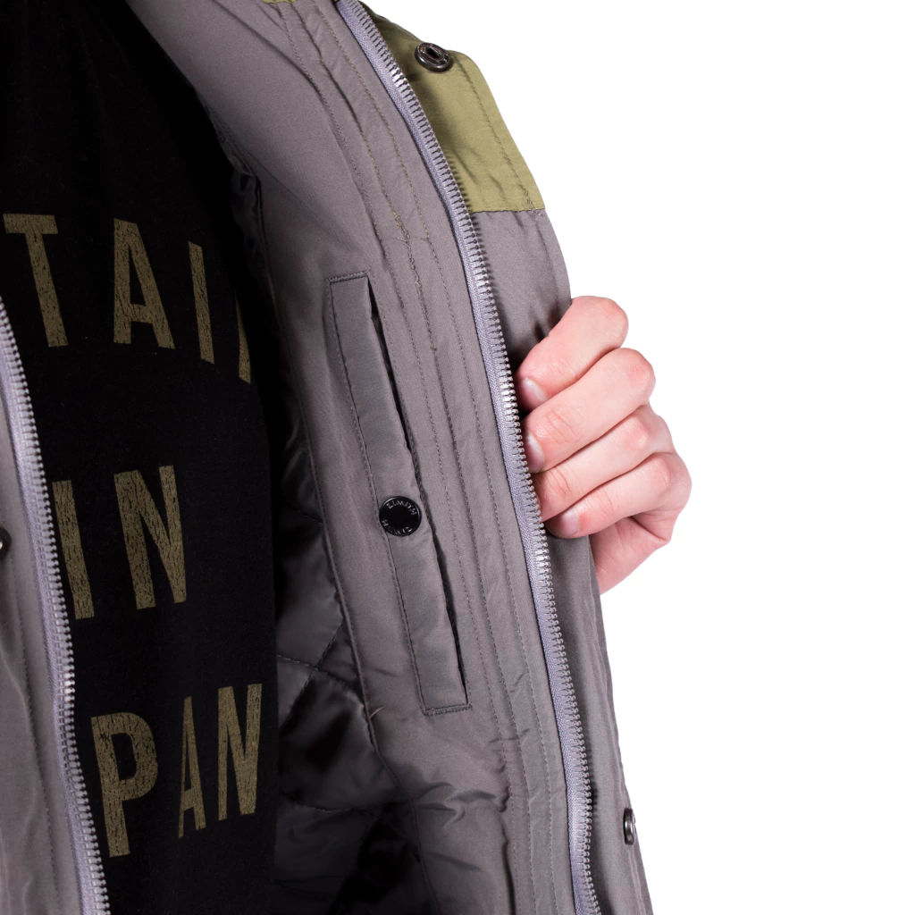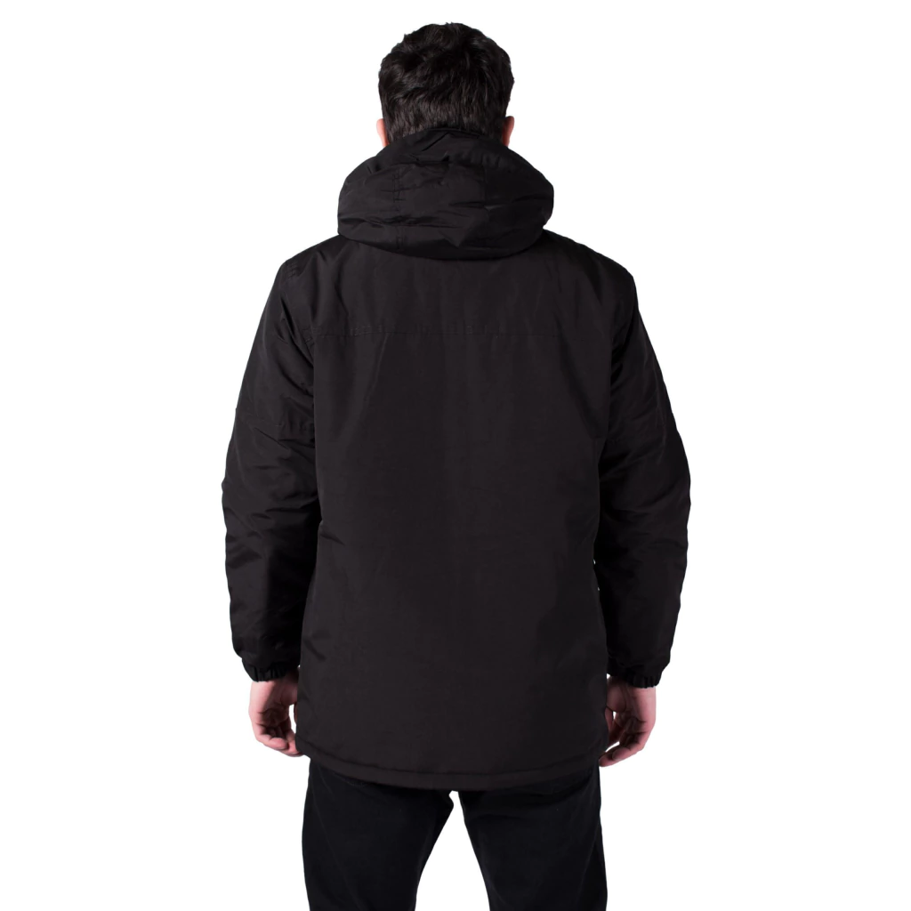 Campera de abrigo con capucha ajustable por cordón. Cuatro bolsillos externos. Un bolsillo interno. Interior con relleno matelaseado. Forrería de capucha en micropolar. Aplique rubber 3D. Ojalillo para auriculares. Puños ajustables por velcro. 100% poliéster.