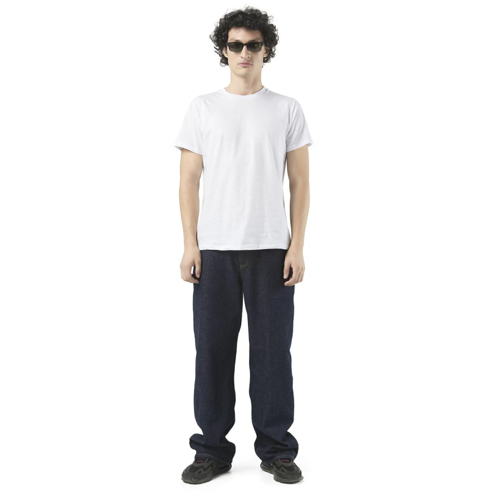 Jean wide tiro alto confeccionado en denim 100% algodón. De pierna recta con leve amplitud en la bota y largo de pierna generoso.