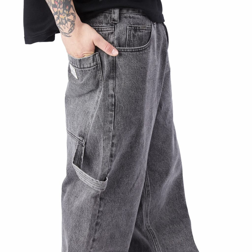 Pantalón de jean carpintero. Pequeñas roturas y desgastes. Bolsillos delanteros. Bolsillos traseros amplios. Avios personalizados. Etiquetas de marca. RELAXED FIT. 100% Algodón.