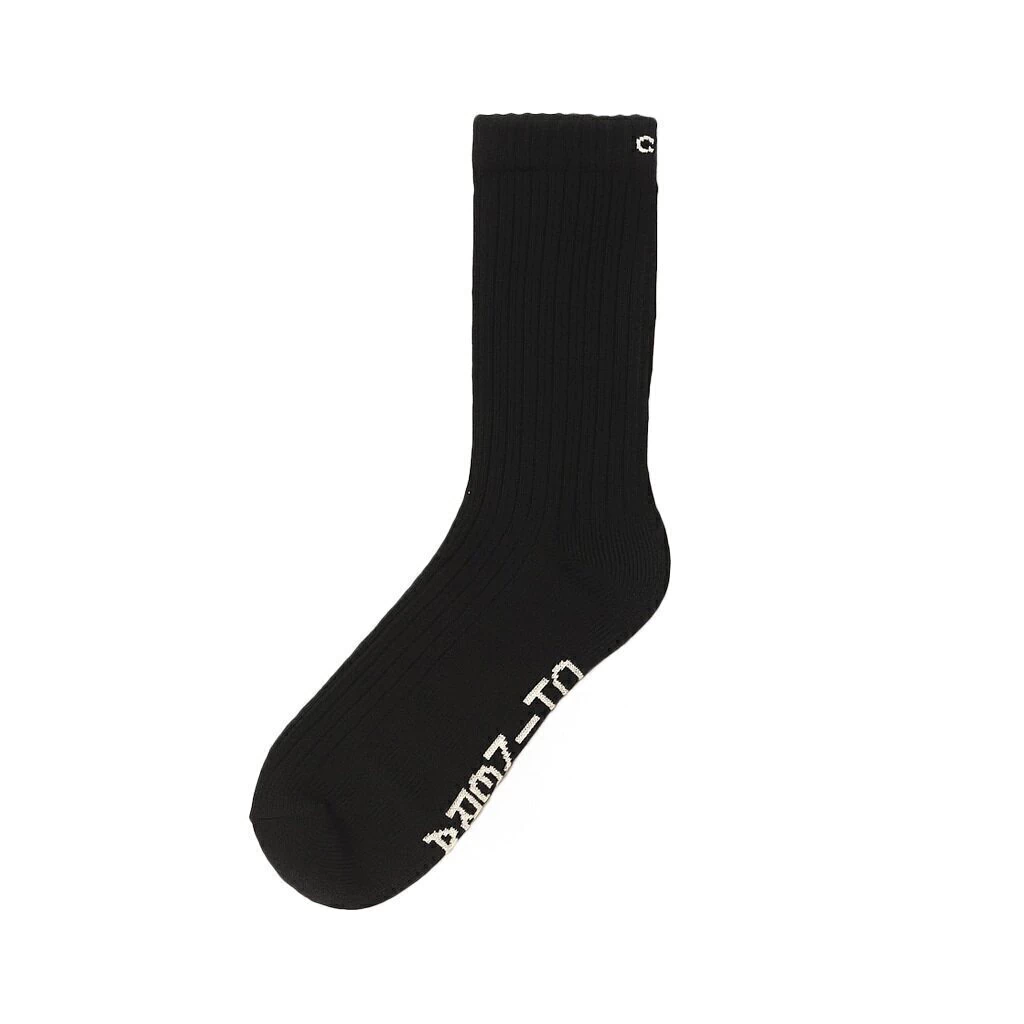 Media en tejido de algodón de media caña, de morley grueso con color a tono en contorno de tobillo y empeine. Logos a contratono crudo en puño y planta.