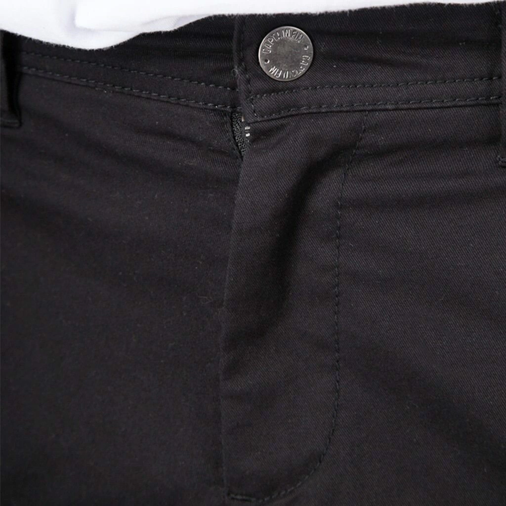 PANTALÓN DE GABARDINA CON AVÍOS METÁLICOS PERSONALIZADOS, LLAVERO METÁLICO GRABADO CON LOGO DE MARCA Y BORDADO EN BOLSILLO TRASERO. BOLSILLOS DELANTEROS LATERALES Y TRASEROS TIPO OJAL.