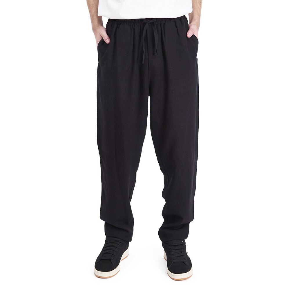 Pantalón de lino composición: 30% lino - 70% rayon. Con cintura elastizada regulable con cordón, bolsillos laterales delanteros y bolsillos ojal en espalda. Etiqueta tejida de marca en delantero y etiqueta festoneada en espalda.