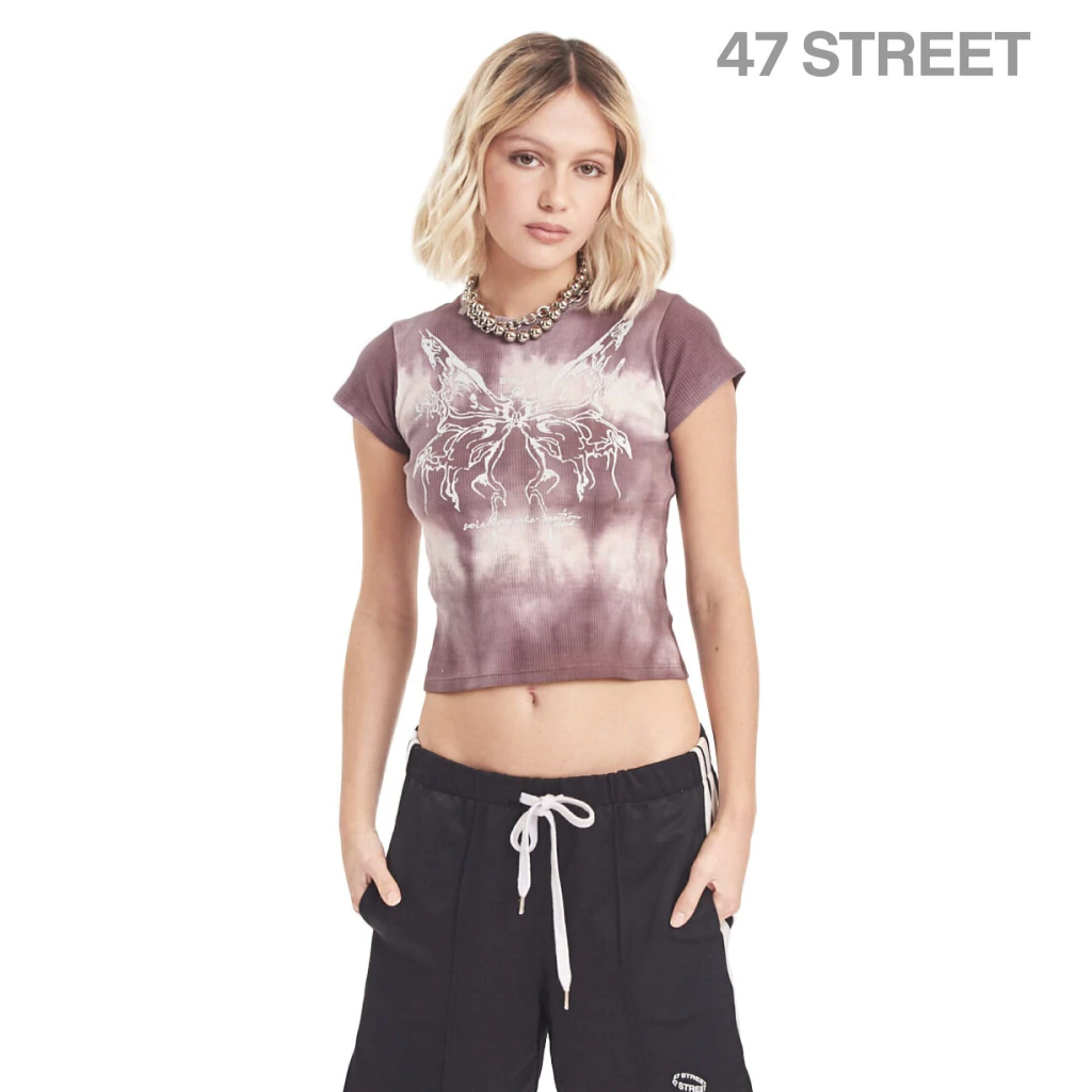 Remera manga corta cuello redondo de morley batik. Cuello aplicado con collareta de tela base. Estampa centrada en delantero. Importante: esta prenda posee un lavado artesanal, por lo cual el batik puede diferir del de la foto.