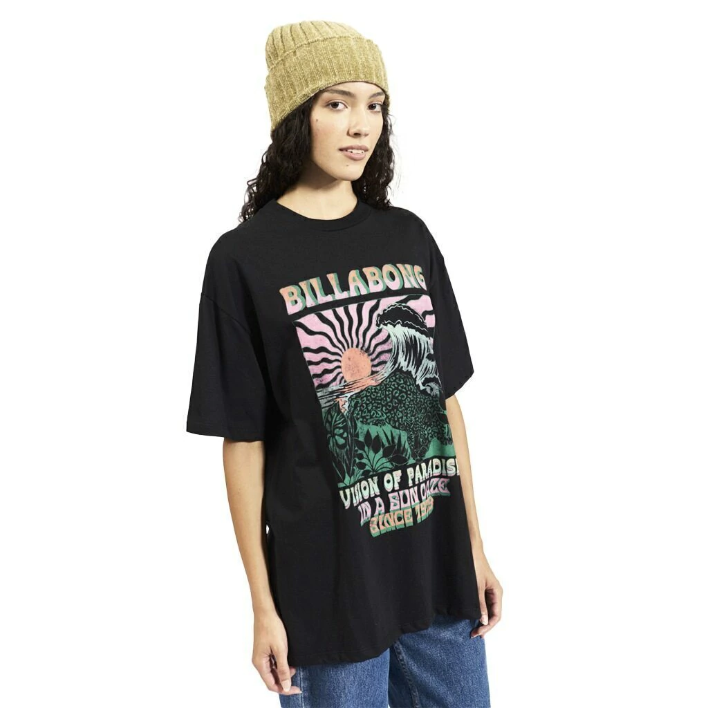 La remera Visions es una prenda que se adapta a todos los estilos. Confeccionada con materiales suaves y cómodos, es perfecta para cualquier actividad física o para un look casual. Su diseño bordado resalta el logo clásico de Billabong. Esta linea esta diseñada para aquellas que nunca tienen el paraíso demasiado lejos. Acá predominan los tonos de piedras preciosas y mares profundos combinados con verdes esmeralda y azules intensos con toques de rosa vibrante, todo en perfecta armonía con negros lavados. Cada prenda refleja un eclecticismo que celebra tanto la fuerza aventurera como la delicadeza femenina. Perfecta para chicas cool con un toque irreverente, "Emerald Vision" ofrece sets deportivos, pantalones baggys y suaves sherpas.