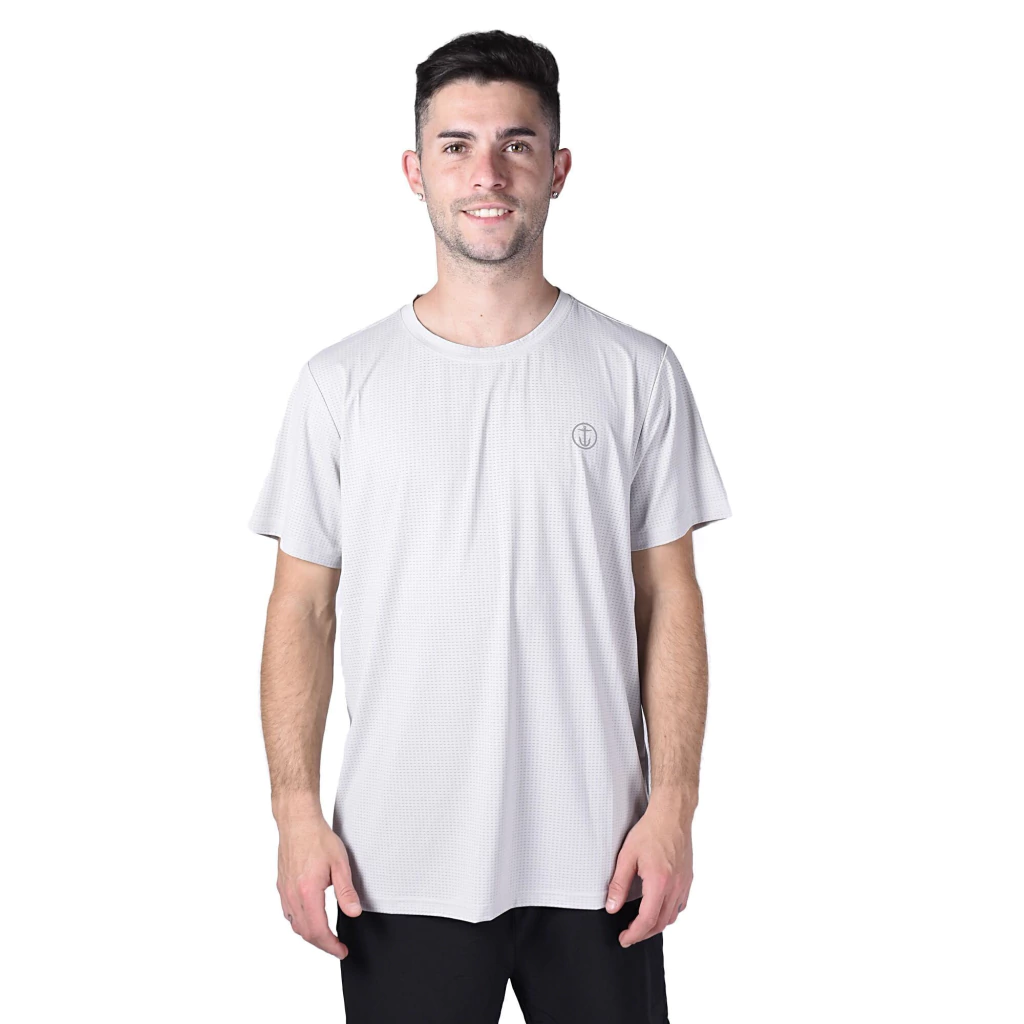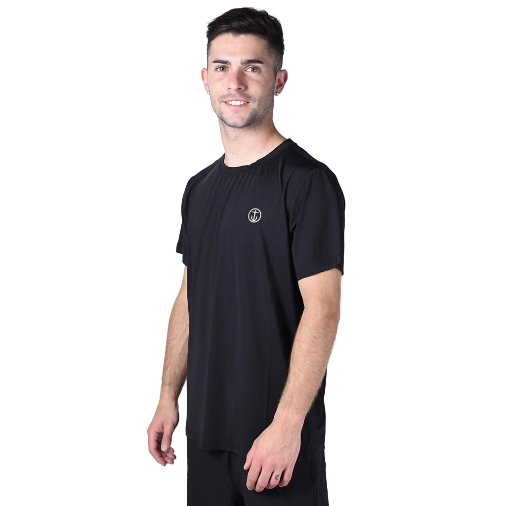 Remera manga corta deportiva composición: 59% poliamida - 25% poliester - 16% elastano, tejido combinado con tecnología de absorción, evacuación del sudor, material ultra ligero y elasticidad multidireccional. Transfer de logo reflectivo en delantero y espalda.