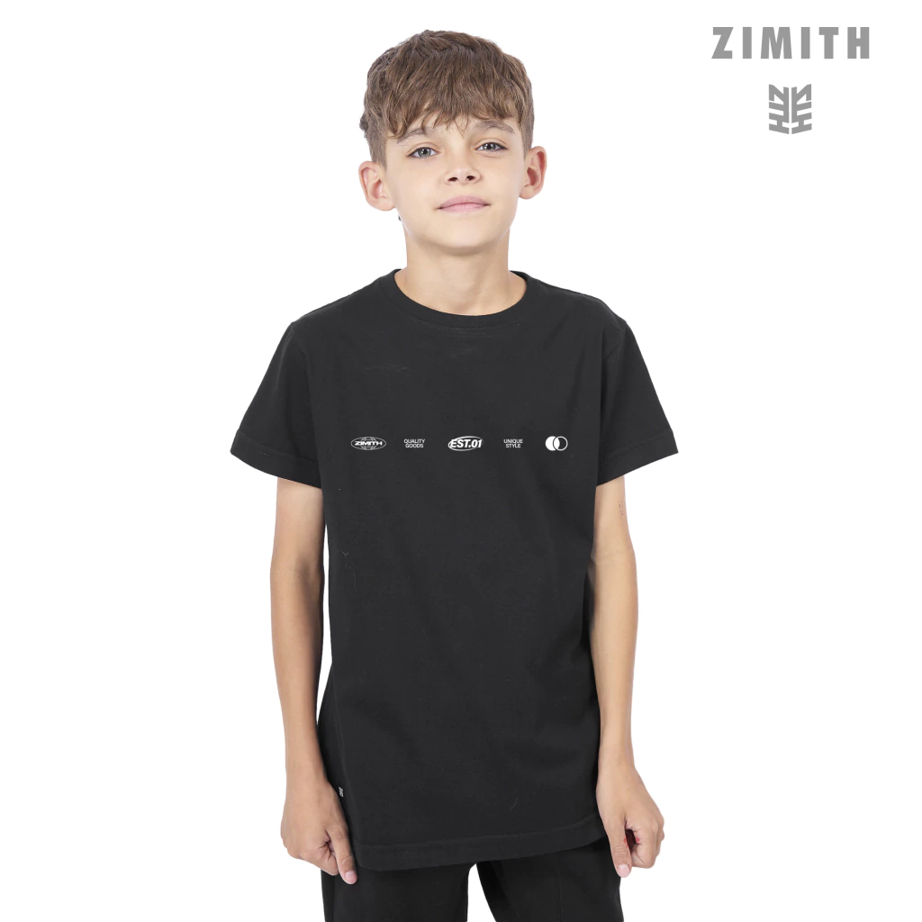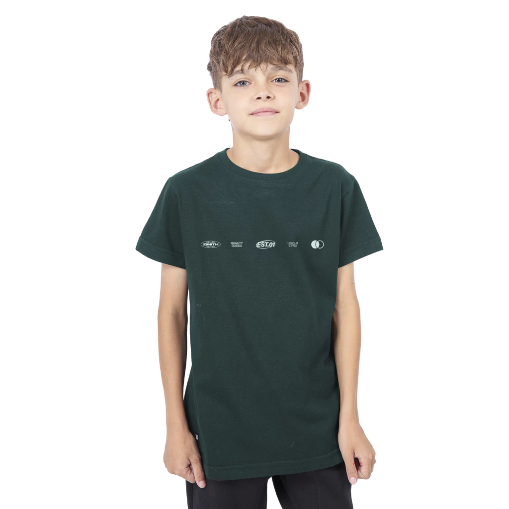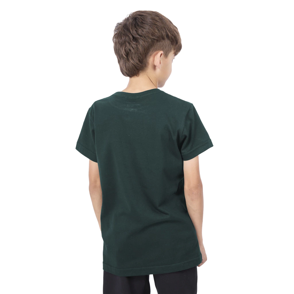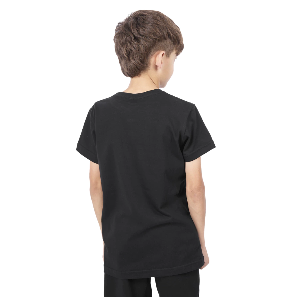 Remera estandar mangas cortas de niño. Estampa serigrafica a un color en frente y espalda. Jersey 24/1.