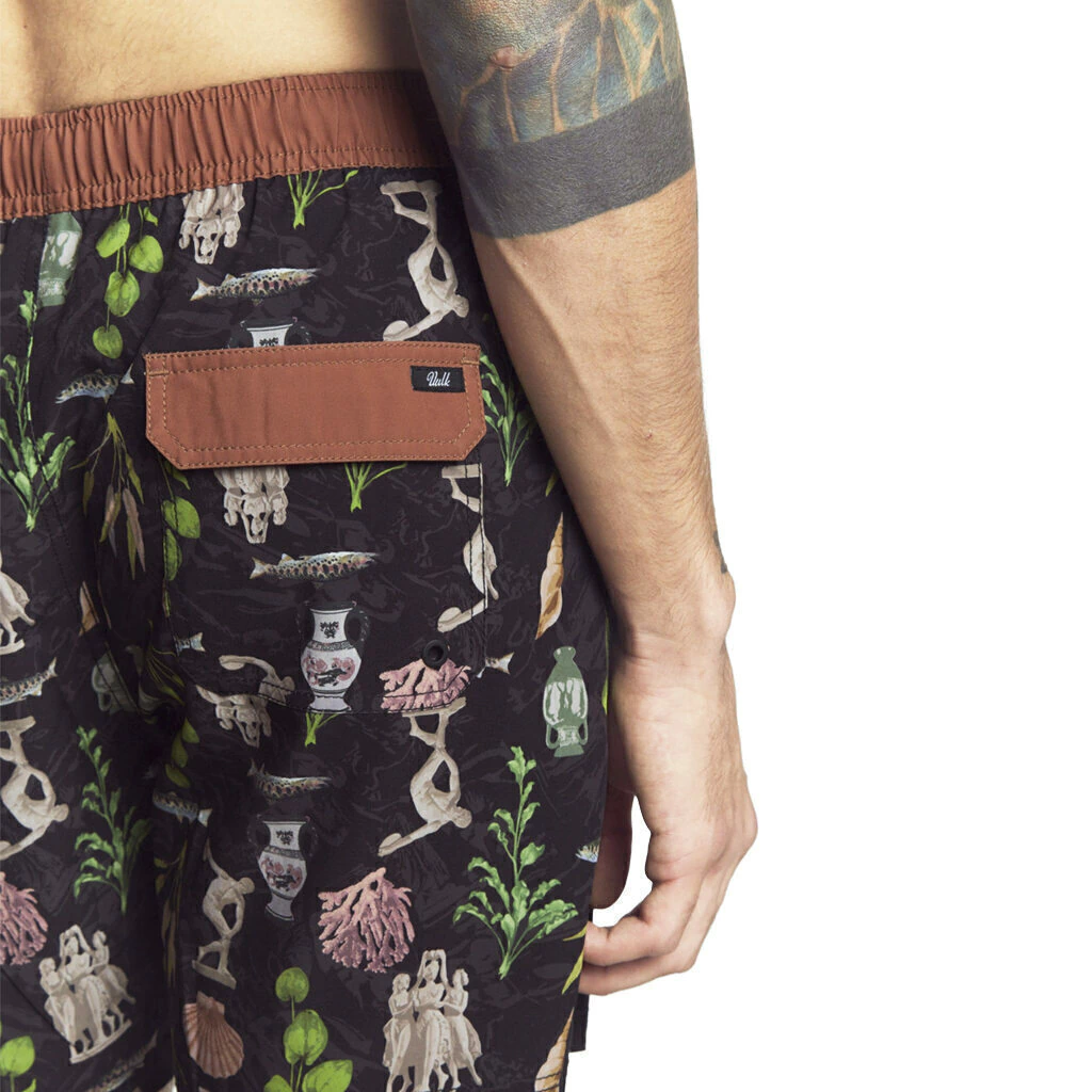 Traje de baño fullprint combinados con cintura y tapa de bolsillo lisos. Largo de 42 cm con cintura elastizada y cordón para mayor ajuste. Tejido confort repelente al agua y de rápido secado, con spandex para mayor comodidad y movilidad. Bolsillos laterales y bolsillo trasero en lado derecho con solapa y velcro. Suspensor interno de mesh (red). Estampa de marca con relieve en pierna izquierda.