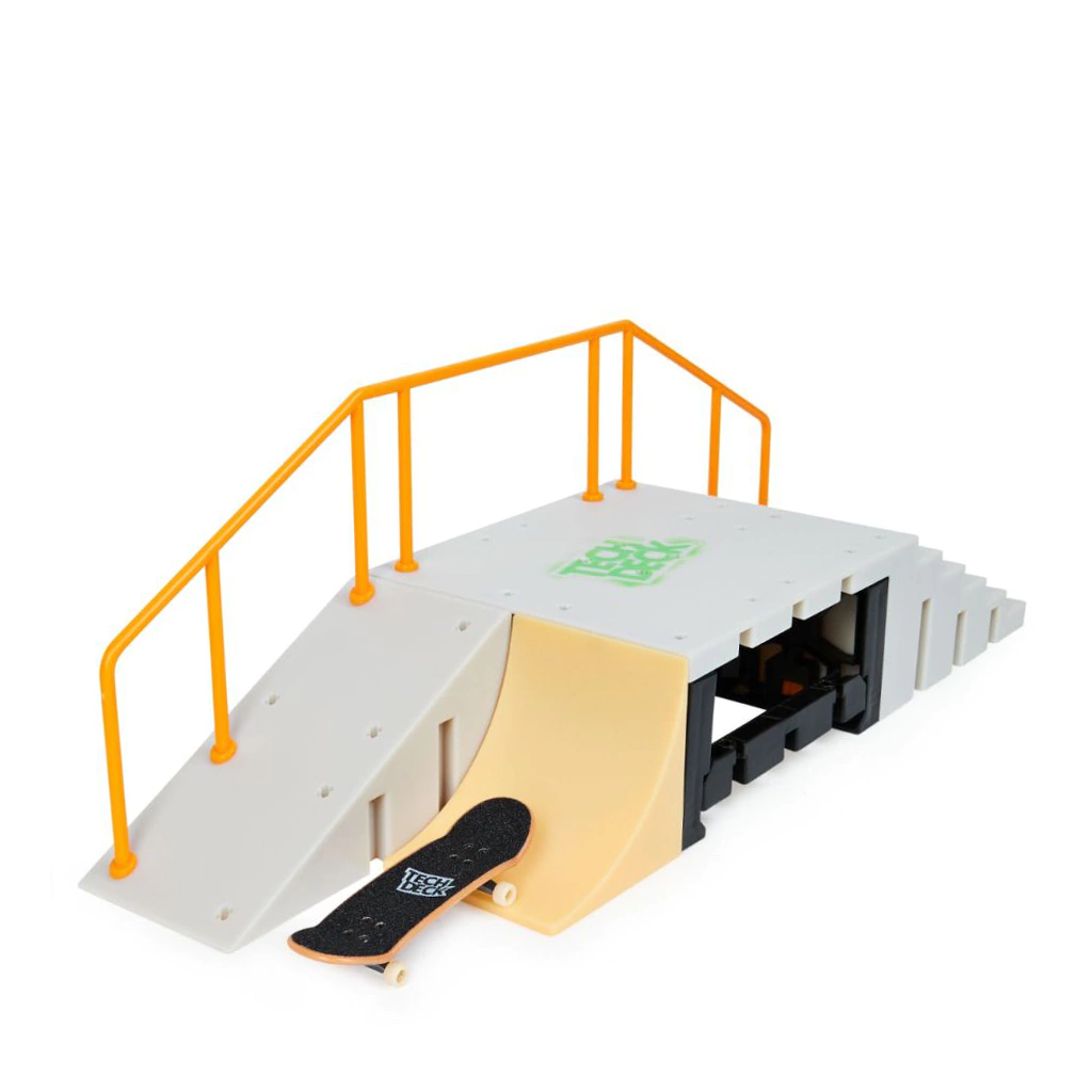 - Incluye: 1 diapasón Tech Deck, 1 escalera, 1 rampa, 1 rampa enrollable, 4 soportes pequeños, 1 panel cuadrado de cubierta tecnológica, 1 riel de escalera corto, 1 riel de rampa corta, 1 riel medio corto, 4 vigas de andamio, 12 conectores X, clavijas de 8 pies, hoja de instrucciones.