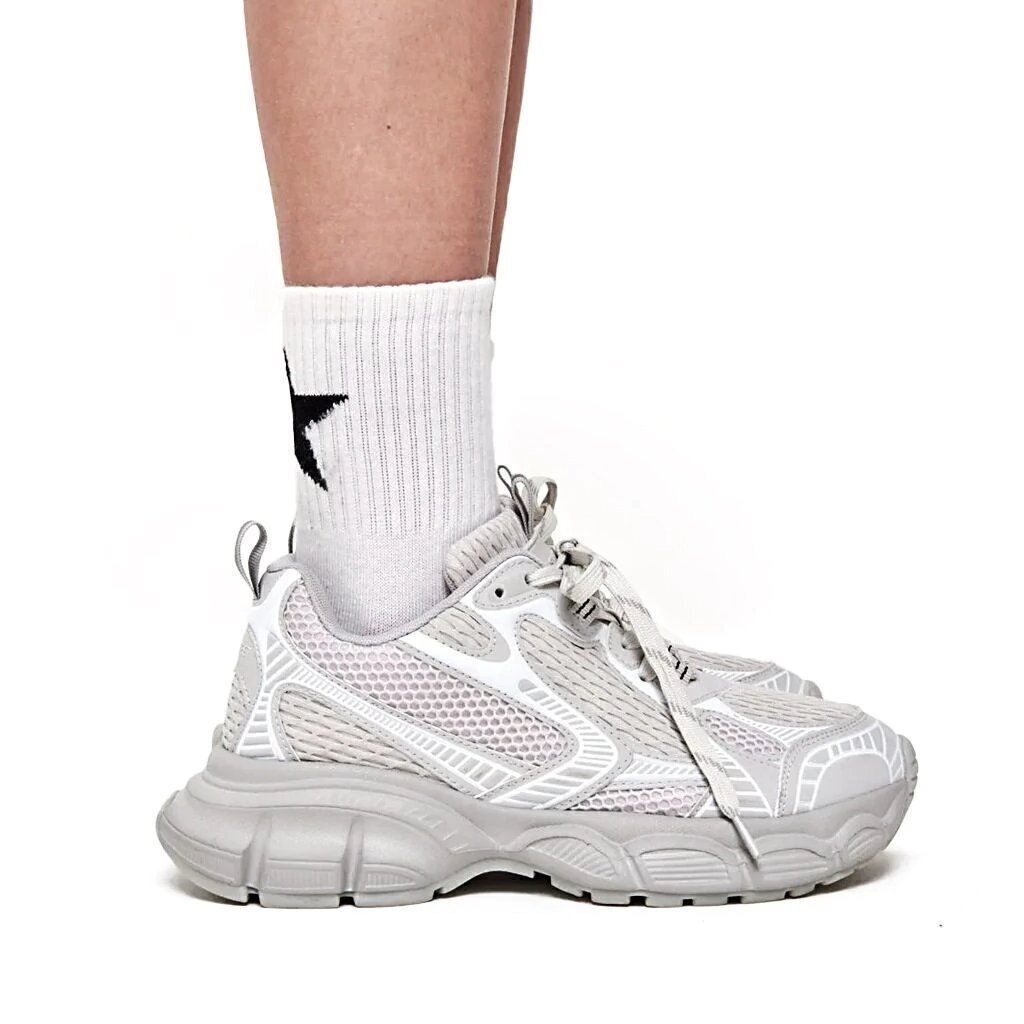 Zapatillas estilo deportivas con capellada de PU y mesh combinados al tono. Cordones con detalles réflex, base alta y diseño envolvente. Ideales para looks con shorts, pantalones cargo o calzas biker.