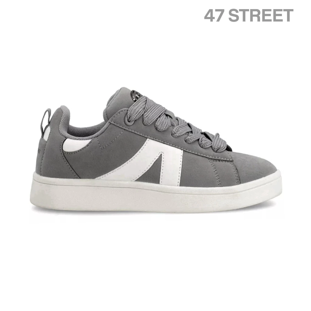 Zapatillas de PU con recortes a contra tono y tag de goma con logo marcario sujeto a la cordonera.