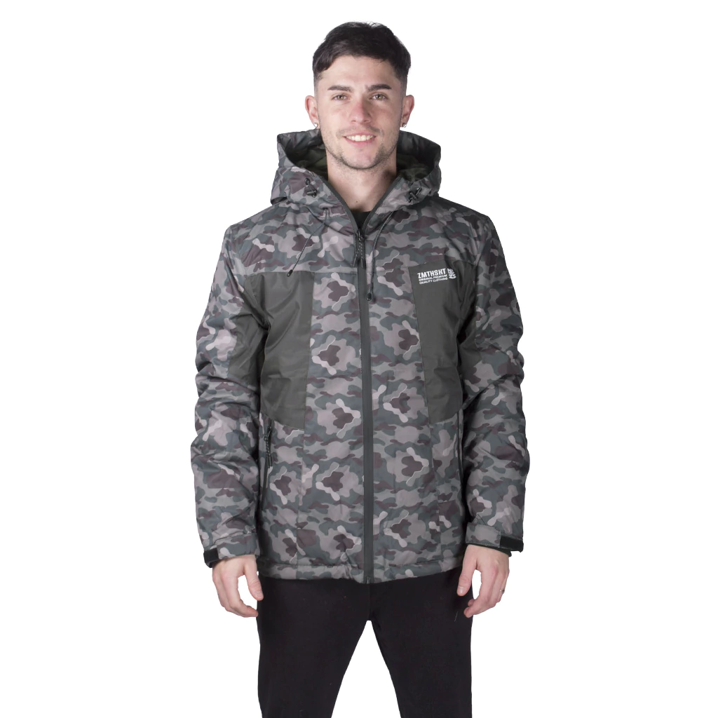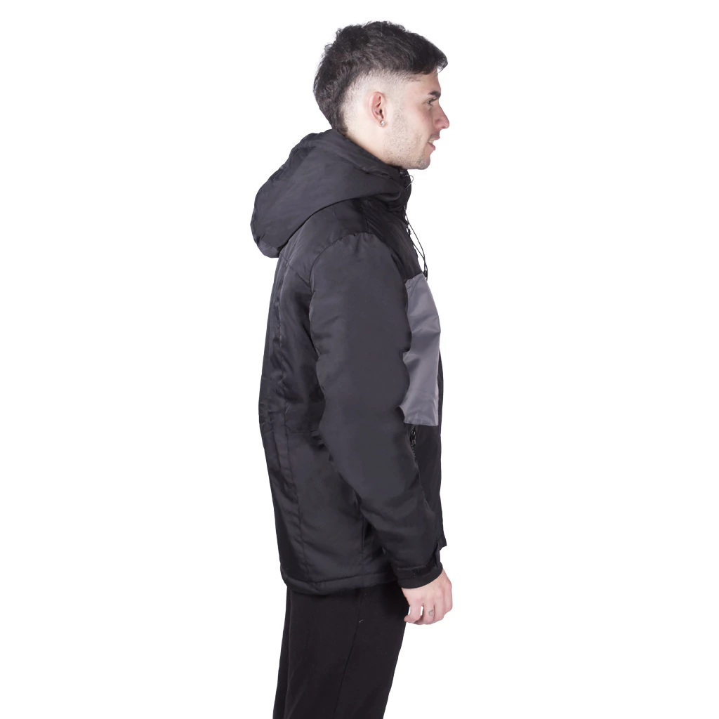 Campera impermeable. Resistente al viento. Capucha fija con ajuste por cordón elástico. Bolsillos externos con cierre.100% Poliéster.